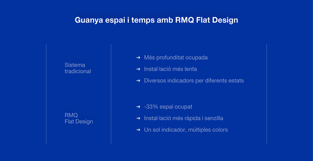 Amb RMQ Flat Design, no només optimitzes l’espai i el temps d’instal·lació, sinó que també aconsegueixes una solució amb un disseny contemporani, intuïtiu i orientat al futur.